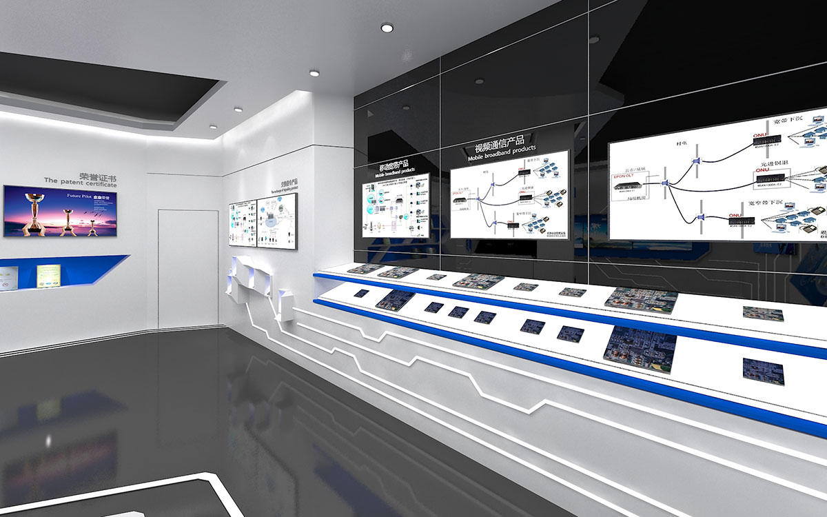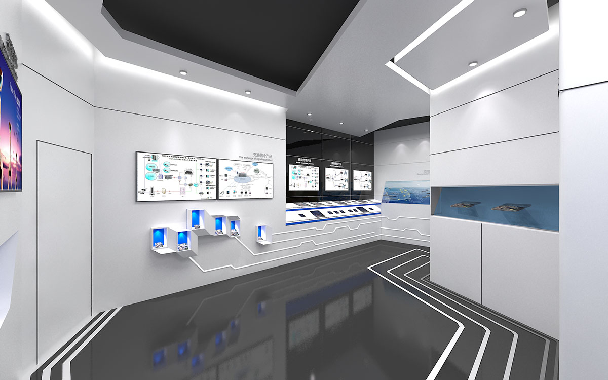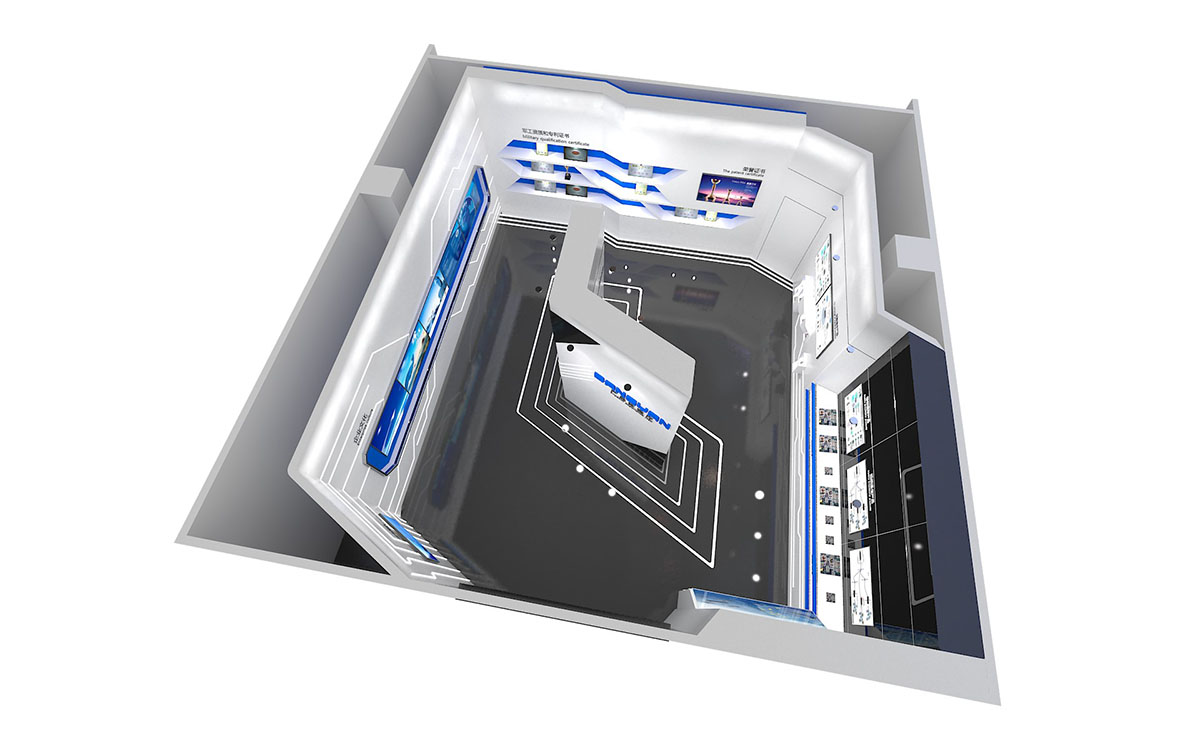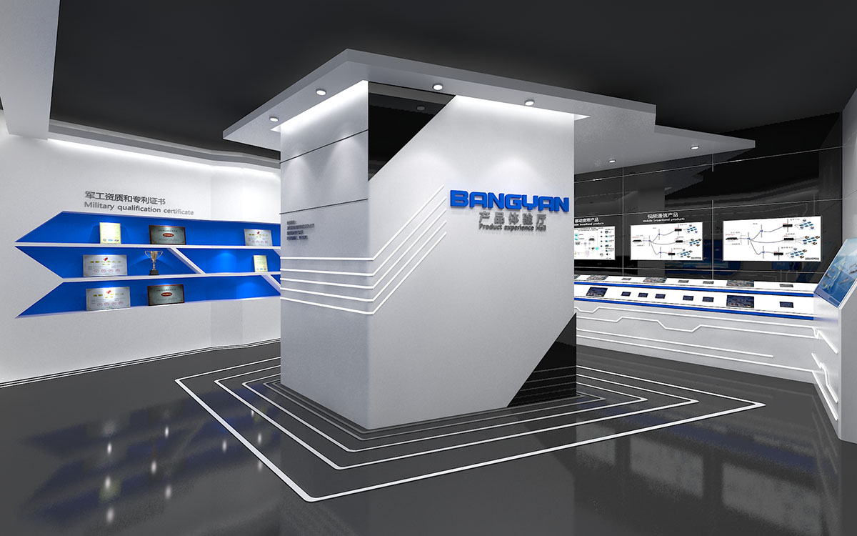 我們在有限的空間中,企業(yè)主要是做通信產(chǎn)品,所以我們以科技的連接為概念,設置了一個未來概念的空間,并通過互動體驗屏,以及多媒體動畫視頻等內容來讓參觀者理解企業(yè)所處行業(yè)達到的技術高度,以及企業(yè)在國防通信領域的重要性。
