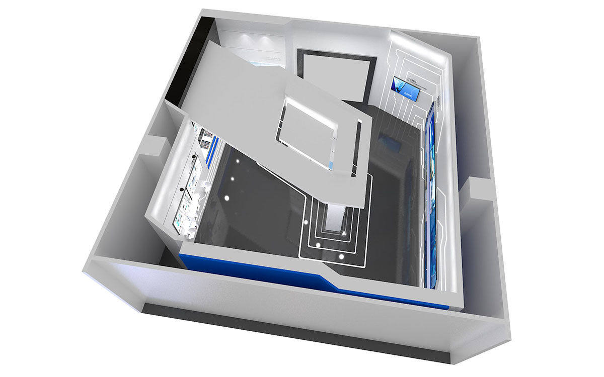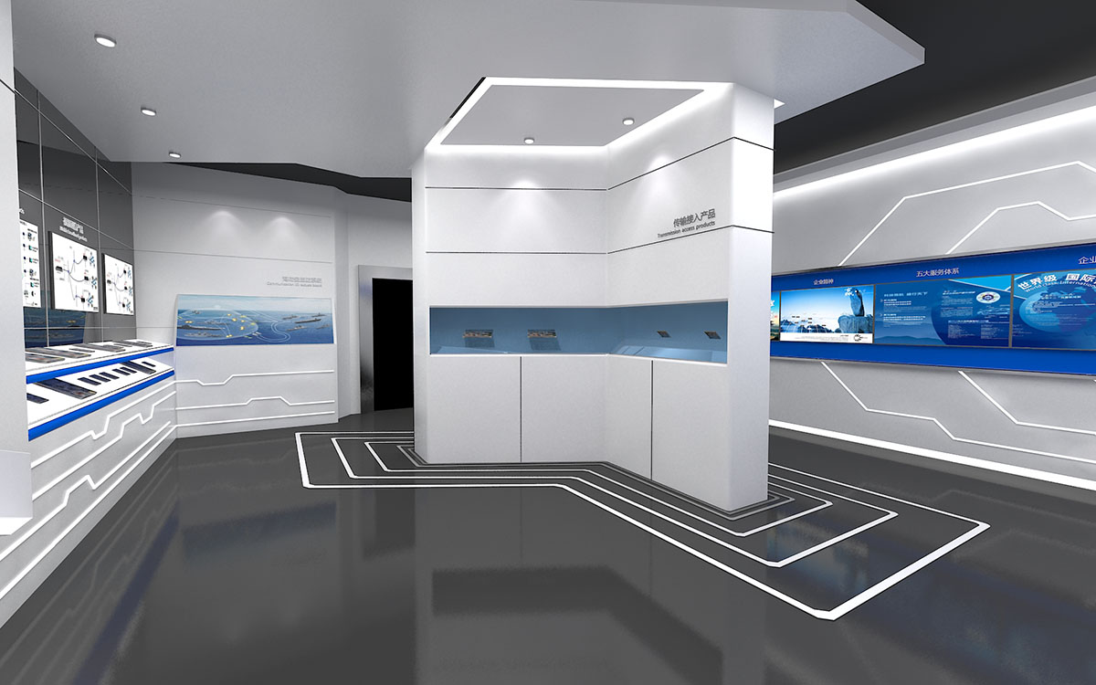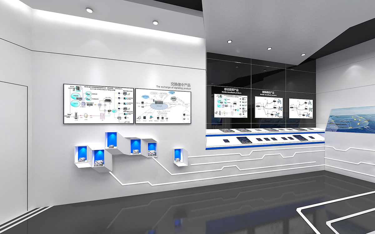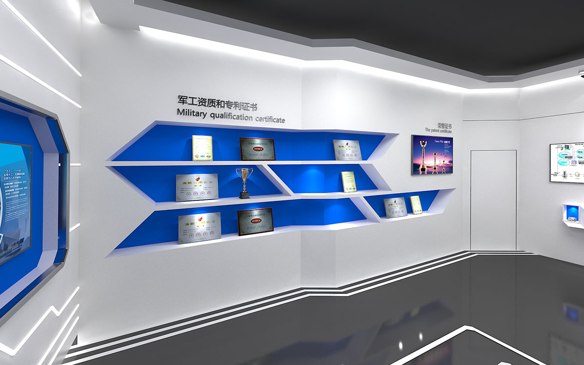 我們在有限的空間中,企業(yè)主要是做通信產(chǎn)品,所以我們以科技的連接為概念,設置了一個未來概念的空間,并通過互動體驗屏,以及多媒體動畫視頻等內容來讓參觀者理解企業(yè)所處行業(yè)達到的技術高度,以及企業(yè)在國防通信領域的重要性。