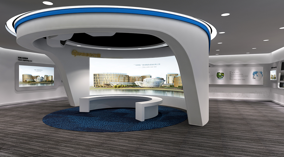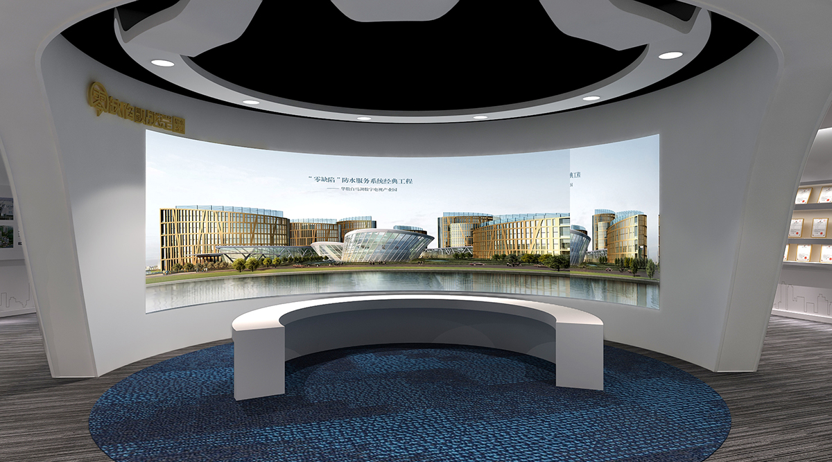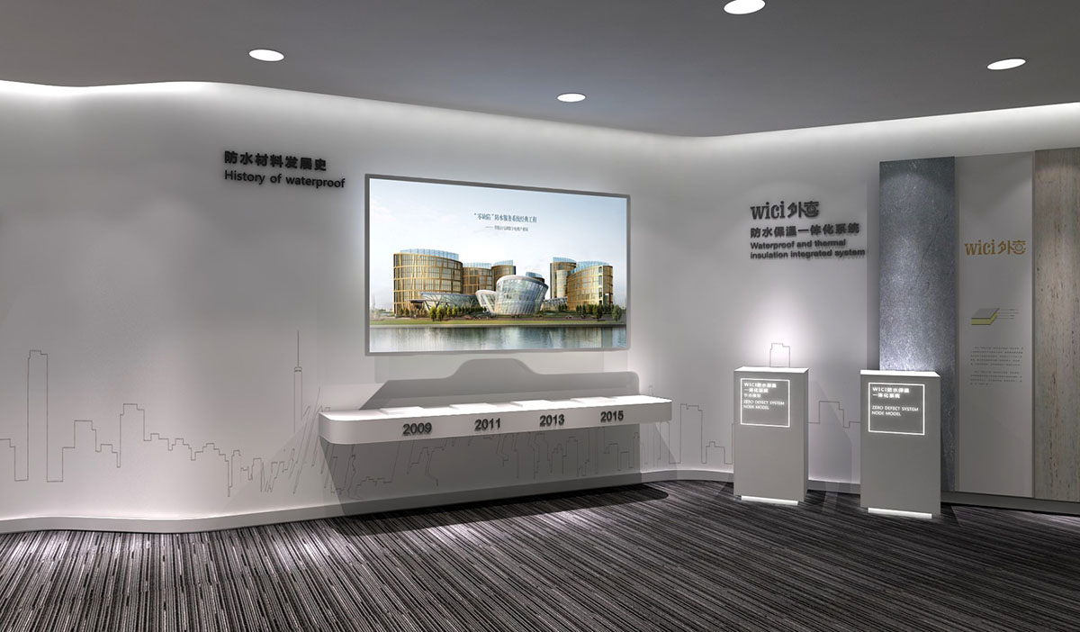 展展廳概念定位為“創新”通過對企業自身產品創新性的挖掘,運用創意與數字多媒體技術的結合,力圖給受眾詮釋行業創新技術帶來的防水革命,以及他在建筑防水行業的最具創新價值。