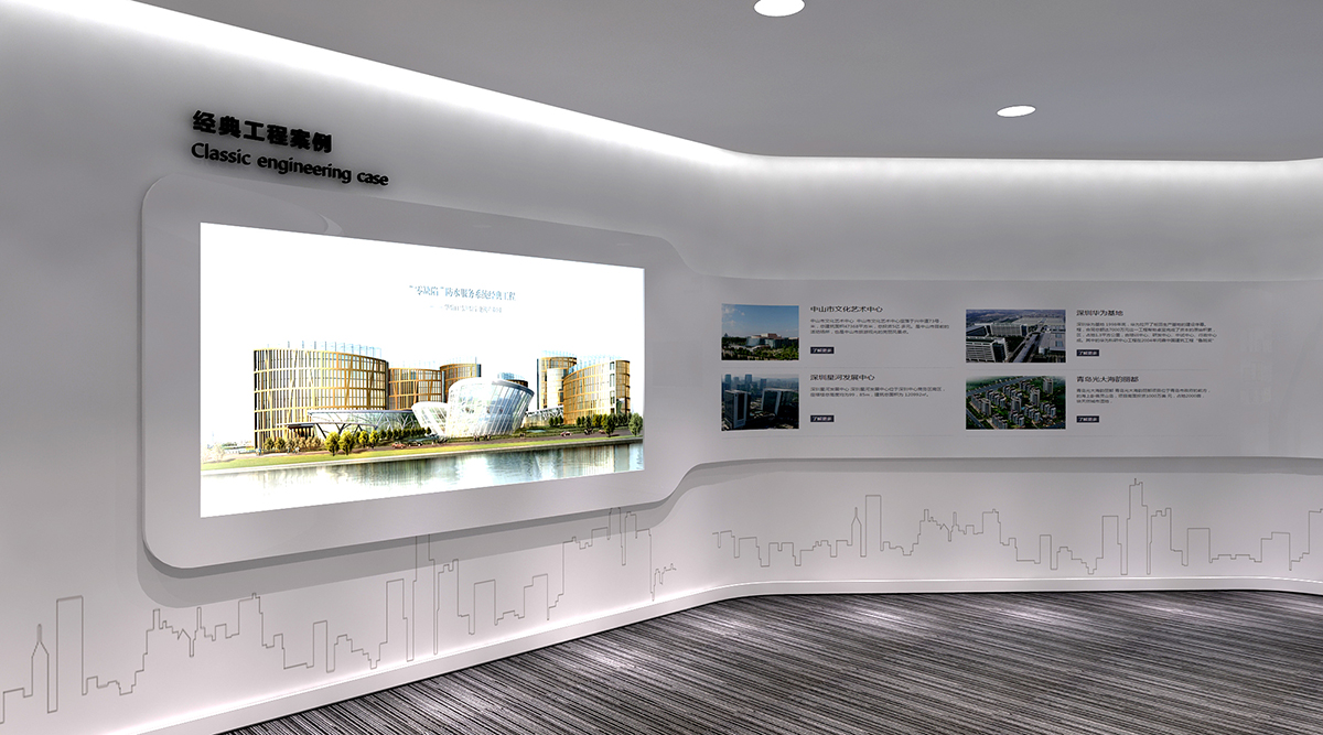展廳用數字化手段替代傳統的展板形式,這樣也可以隨時更新展示的內容和技術方案和企業多樣化產品及服務。