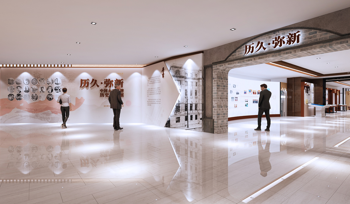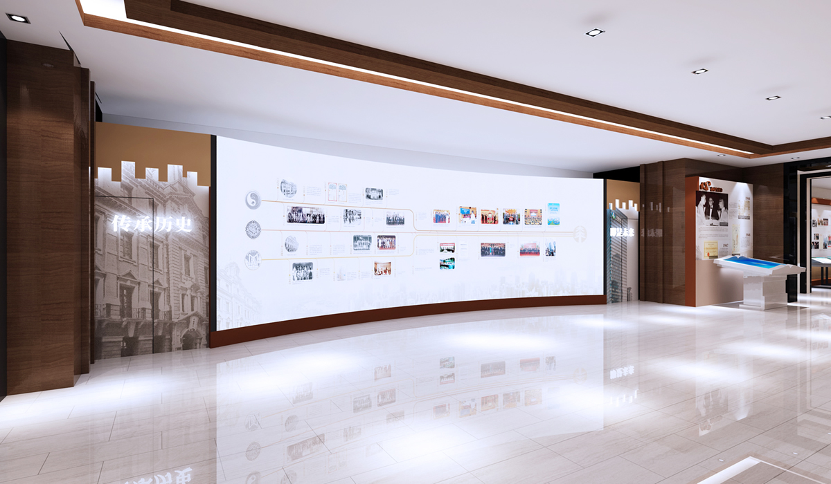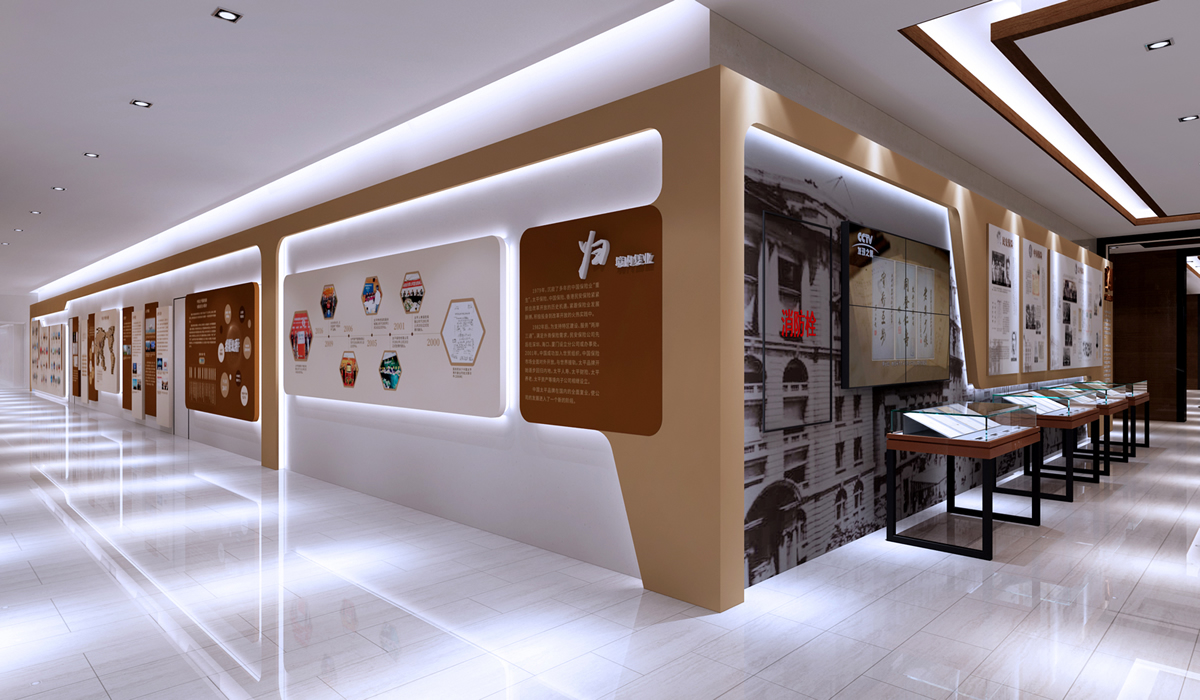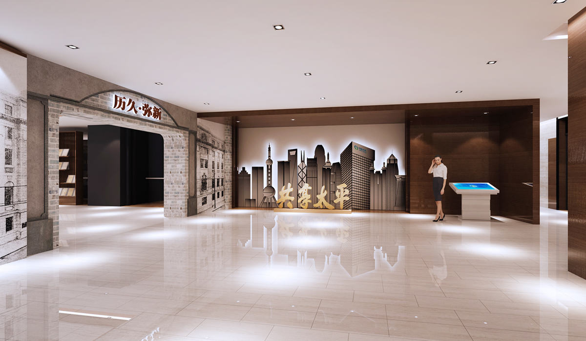 我們充分利用現(xiàn)有場(chǎng)地的特點(diǎn)——回字型長廊進(jìn)行的區(qū)域規(guī)劃和內(nèi)容的設(shè)置,我們從企業(yè)歷史起源、發(fā)展歷程、以及未來業(yè)務(wù)布局做三個(gè)重點(diǎn)區(qū)域的設(shè)置。讓參觀者一進(jìn)入展區(qū)就有一種代入感,來到企業(yè)成立的上海當(dāng)年的場(chǎng)景,隨著參觀者的不斷向前,一步一景,不知不覺就過渡到企業(yè)現(xiàn)代的發(fā)展情況介紹,最后出口更是展現(xiàn)出企業(yè)未來的戰(zhàn)略規(guī)劃遠(yuǎn)景。